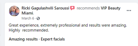 "I got a Microdermabrasion anti-aging facial in Aventura at VIP Beauty Salon. It was great, Liat took time and my skin feels very smooth. I already booked my next appointment."